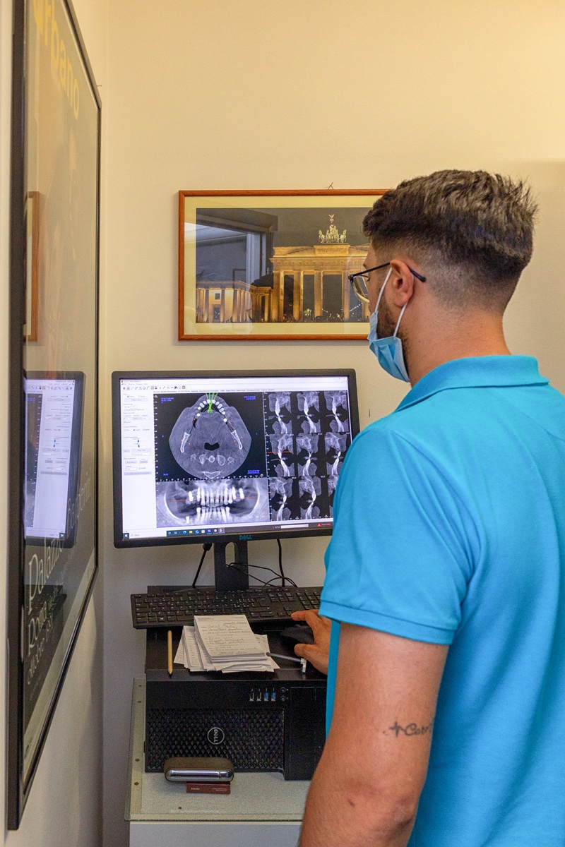 Prima di qualsiasi trattamento estetico, eseguiamo un esame clinico completo per valutare lo stato di salute di denti e gengive e definire il piano di trattamento più adatto.